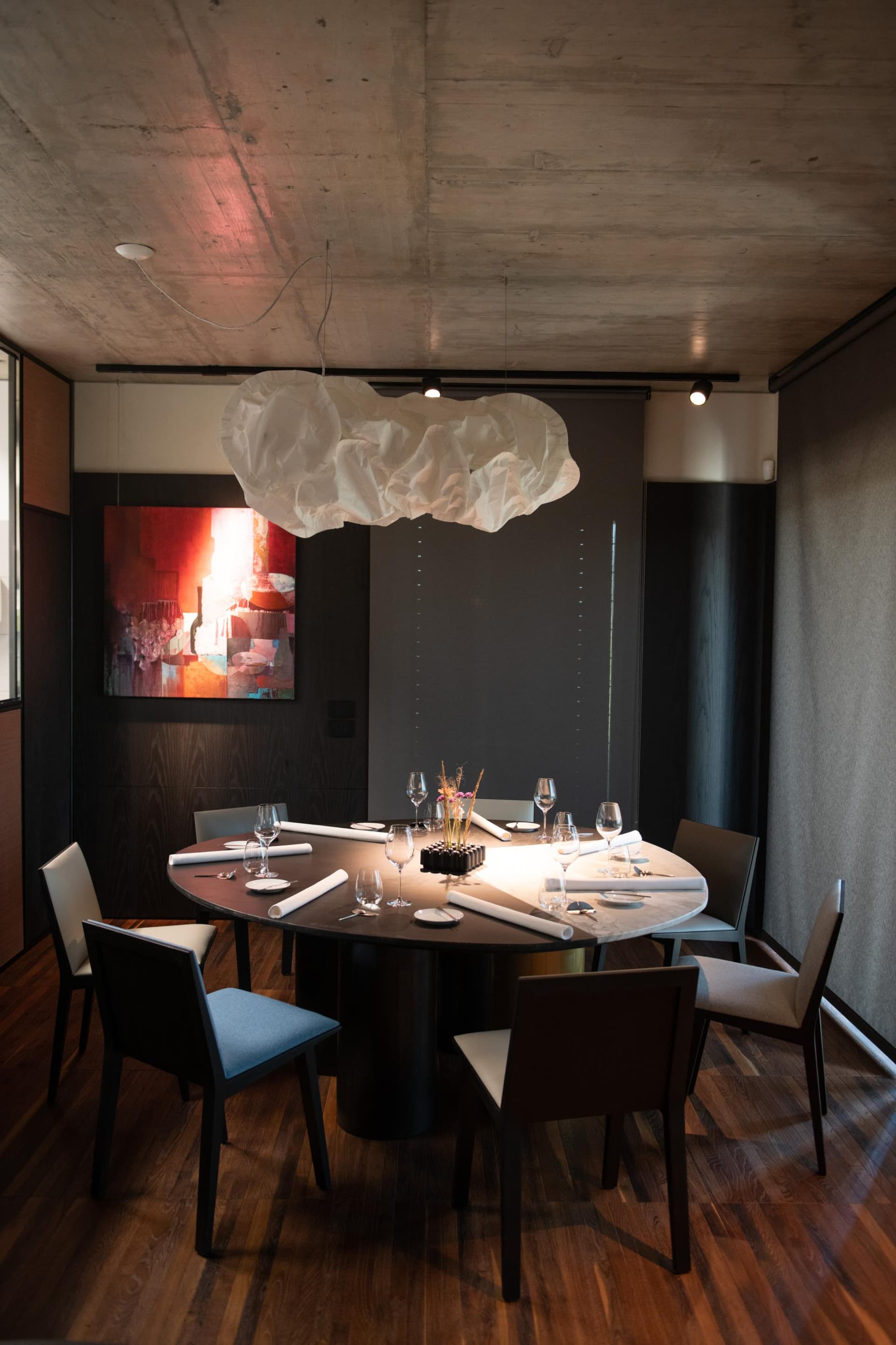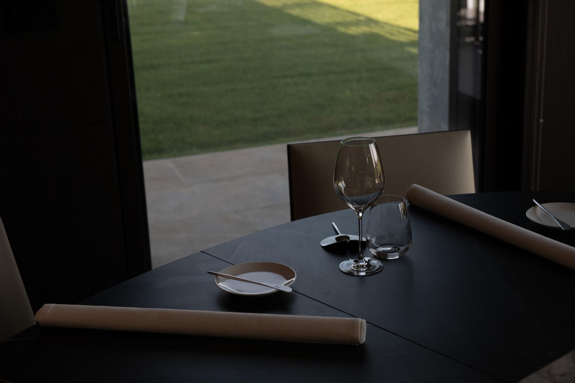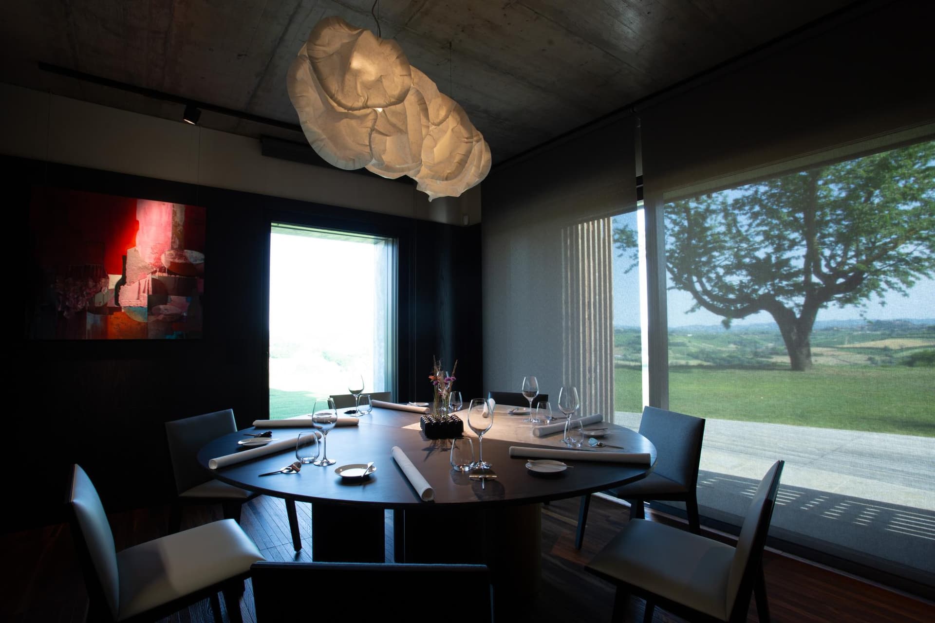 La sala, con un numero limitato di posti, assicura un'esperienza esclusiva, e ogni tavolo offre una vista panoramica sulle colline del Monferrato. Il design semplice ma elegante esalta i piatti, lasciando il cibo e il vino come veri protagonisti della serata.